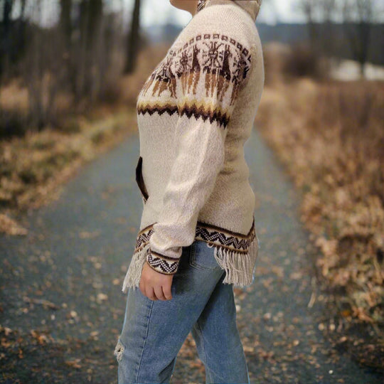 OLDTRIBES™ Women Cardigan Beize Alpaca Sweater