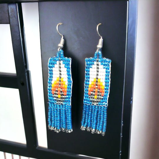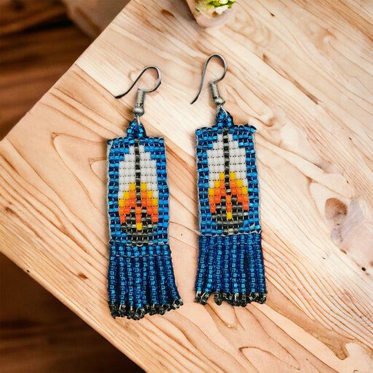Oldtribes™Electric Blue Beaded Feather Earrings