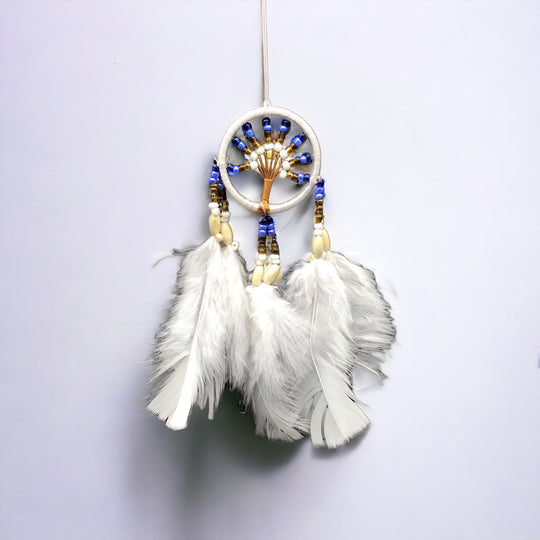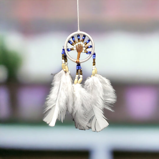 Legend says that the web in the middle of the hoop would catch the bad dreams while letting good dreams pass through and slide down the feathers