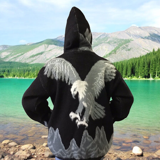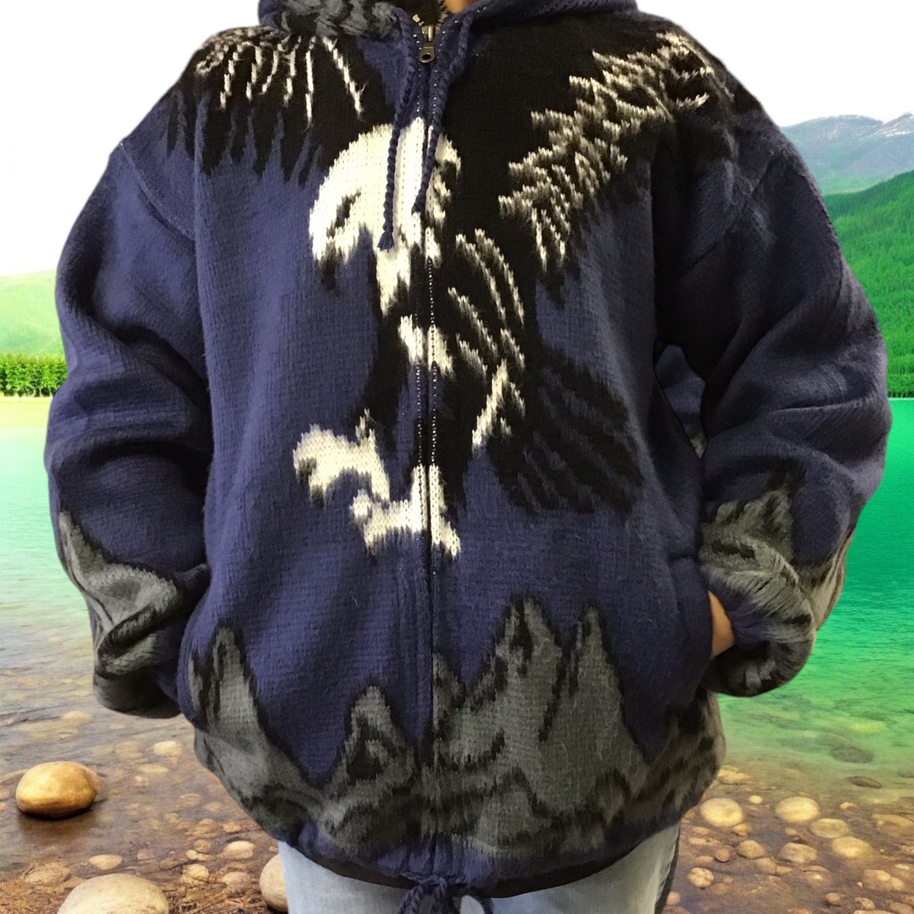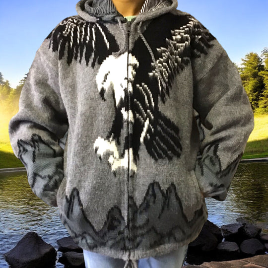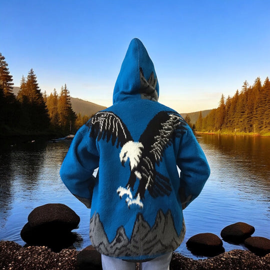Our jackets come from Indigenous countries—Peru, Guatemala, Mexico, and Ecuador—and are 100% handmade. Our blankets are manufactured in Canada, and our beadwork is made by local artisans in Alberta.