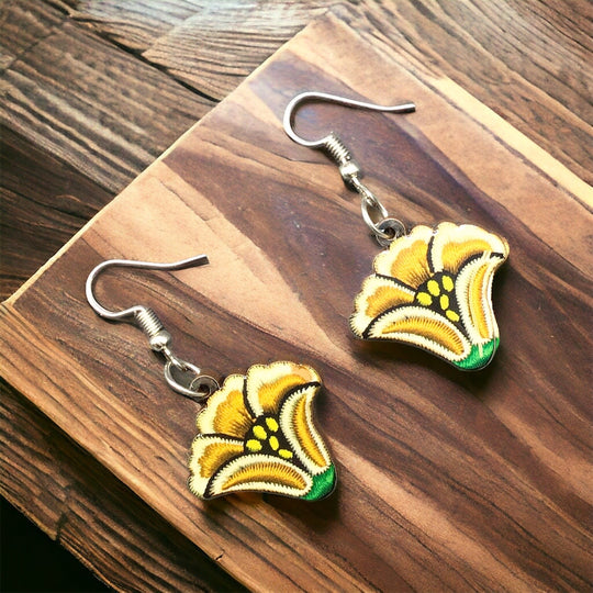 OLDTRIBES™ Painted Mustard Flower Wood Earrings