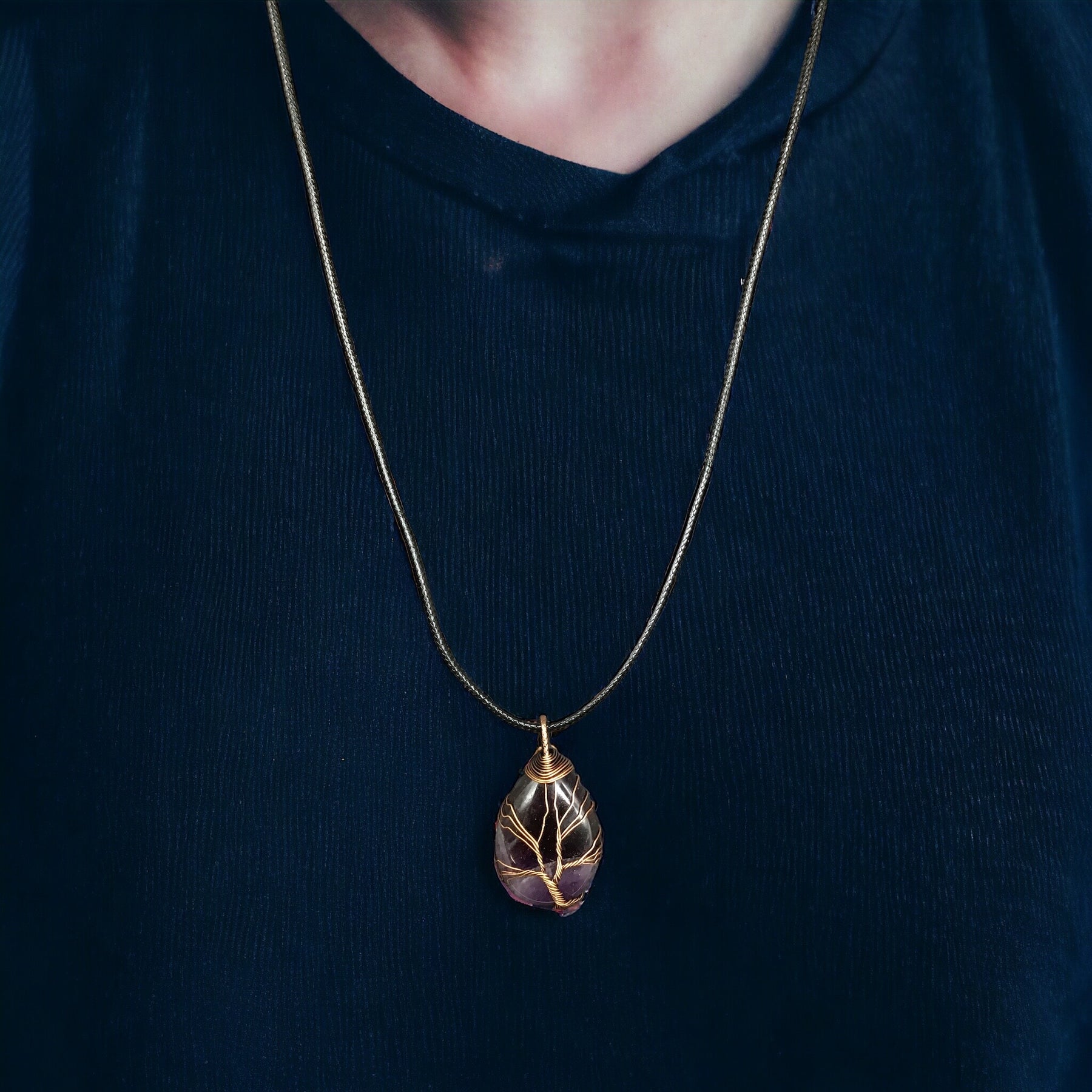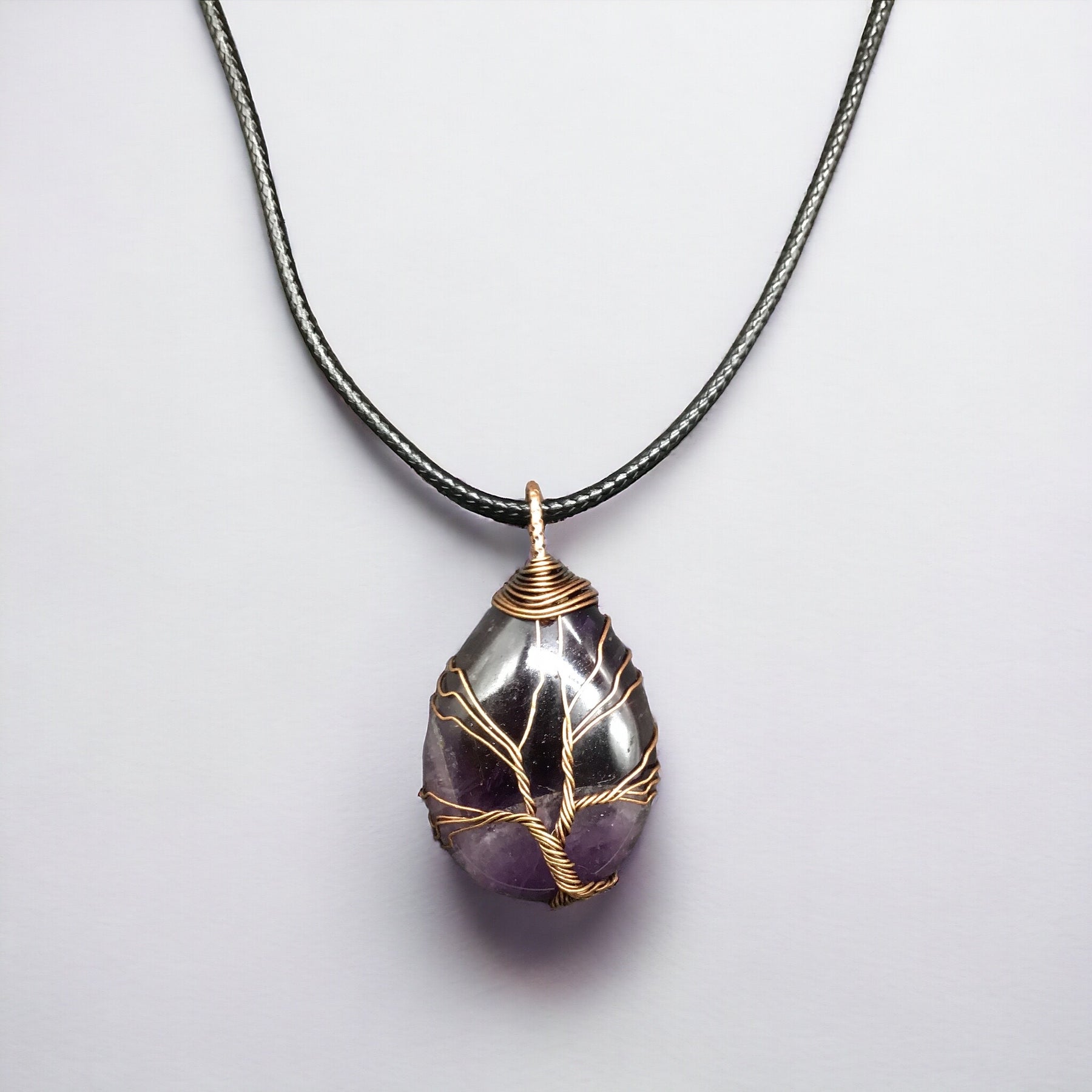 Purple Gemstone Pendant Wrapped w/ Copper Tree of Life