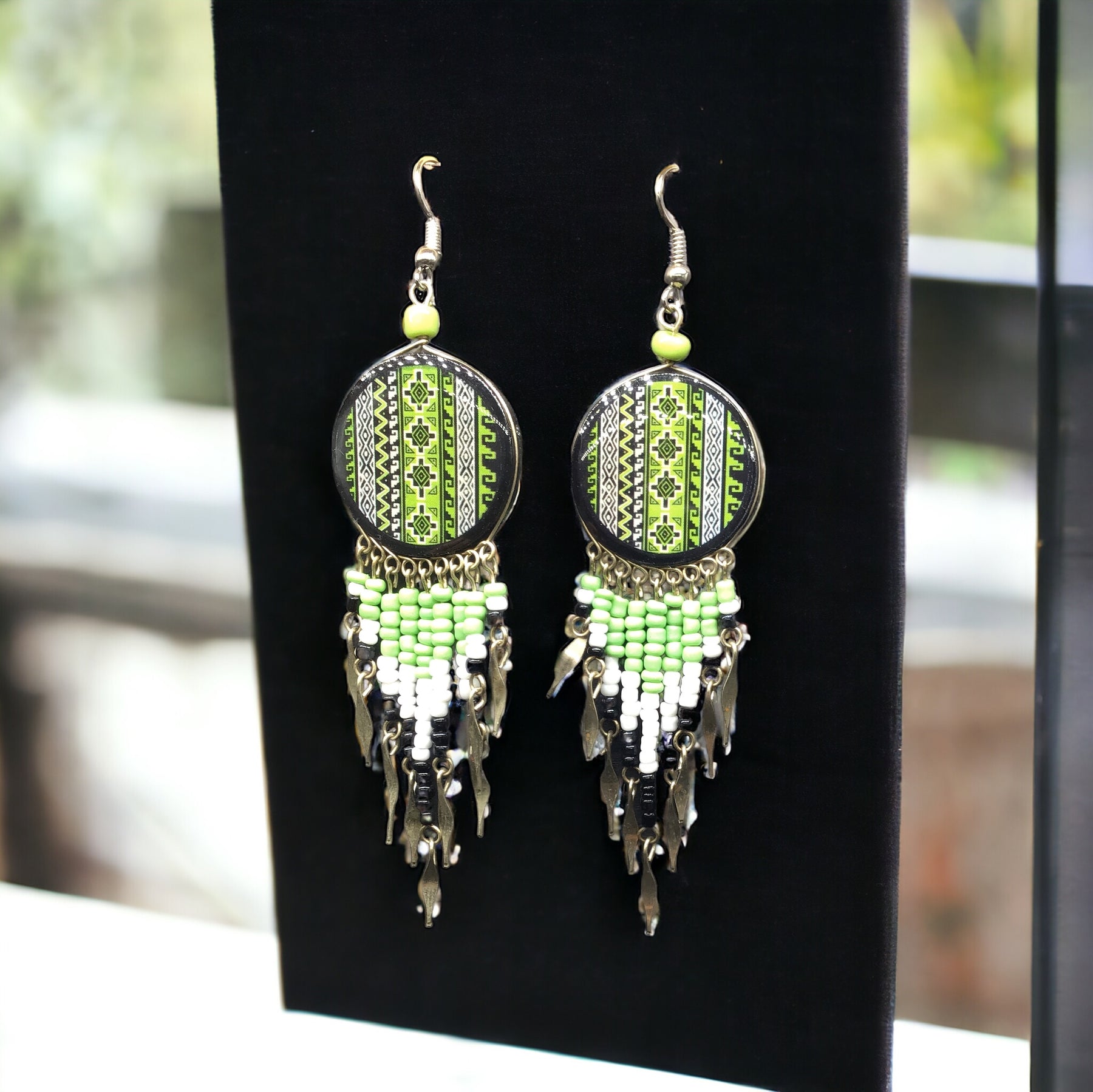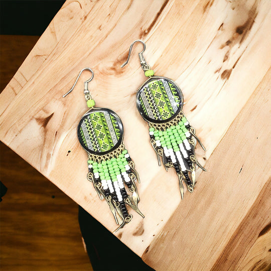 Enhance your style with our stunning Tribal Earrings, crafted from beaded metal with a unique design. Made from high-quality ceramic, these earrings are not only stylish but also durable, ensuring they will last for years to come.