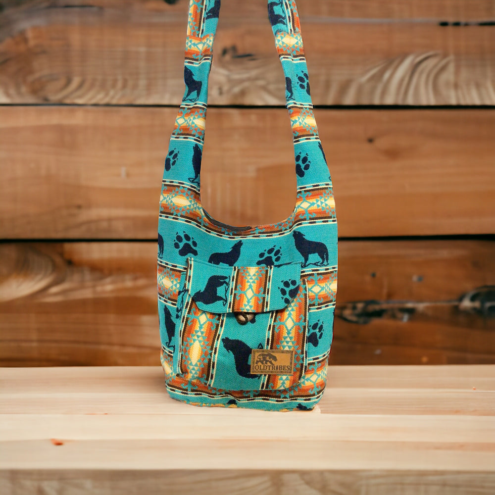 OLDTRIBES™ Turquoise and Orange Black wolf Crossbody Bag