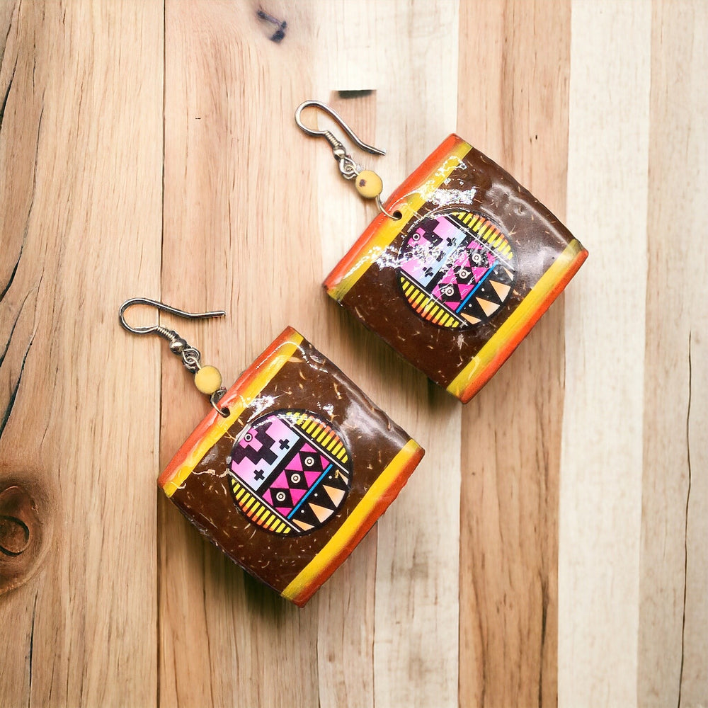 These wood painted square earrings are the perfect accessory to add a touch of elegance and sophistication to any outfit. Handcrafted with care, these earrings feature a unique square design that is both modern and timeless. The wooden material adds a natural element to the earrings, while the painted finish adds a pop of color that will complement any look. Whether you're dressing up for a special occasion or just want to add a stylish touch to your everyday ensemble, these earrings are sure to make a statement.