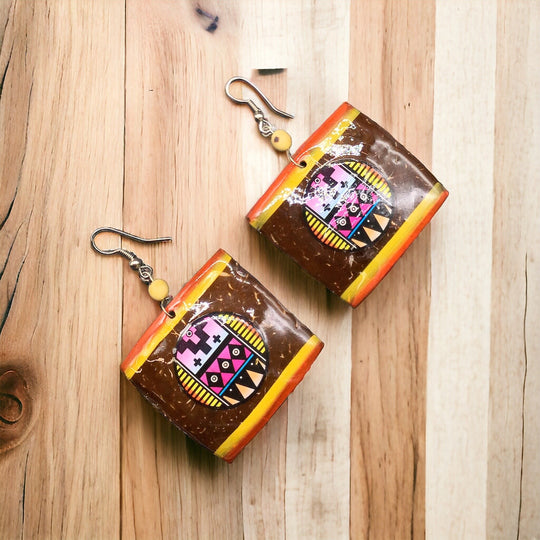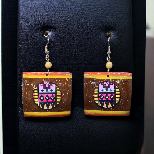 OLDTRIBES™ Wood Painted Yellow Square Earrings