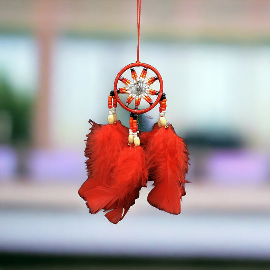 Legend says that the web in the middle of the hoop would catch the bad dreams while letting good dreams pass through and slide down the feathers