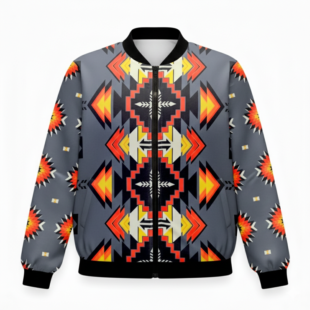 Complete with a sleek zipper closure and carefully tailored fit, the jackets are versatile enough for every occasion—whether you’re heading to a casual outing, a formal event, or a seasonal adventure. Each piece in this collection is a celebration of resilience, unity, and the enduring beauty of Indigenous craftsmanship.