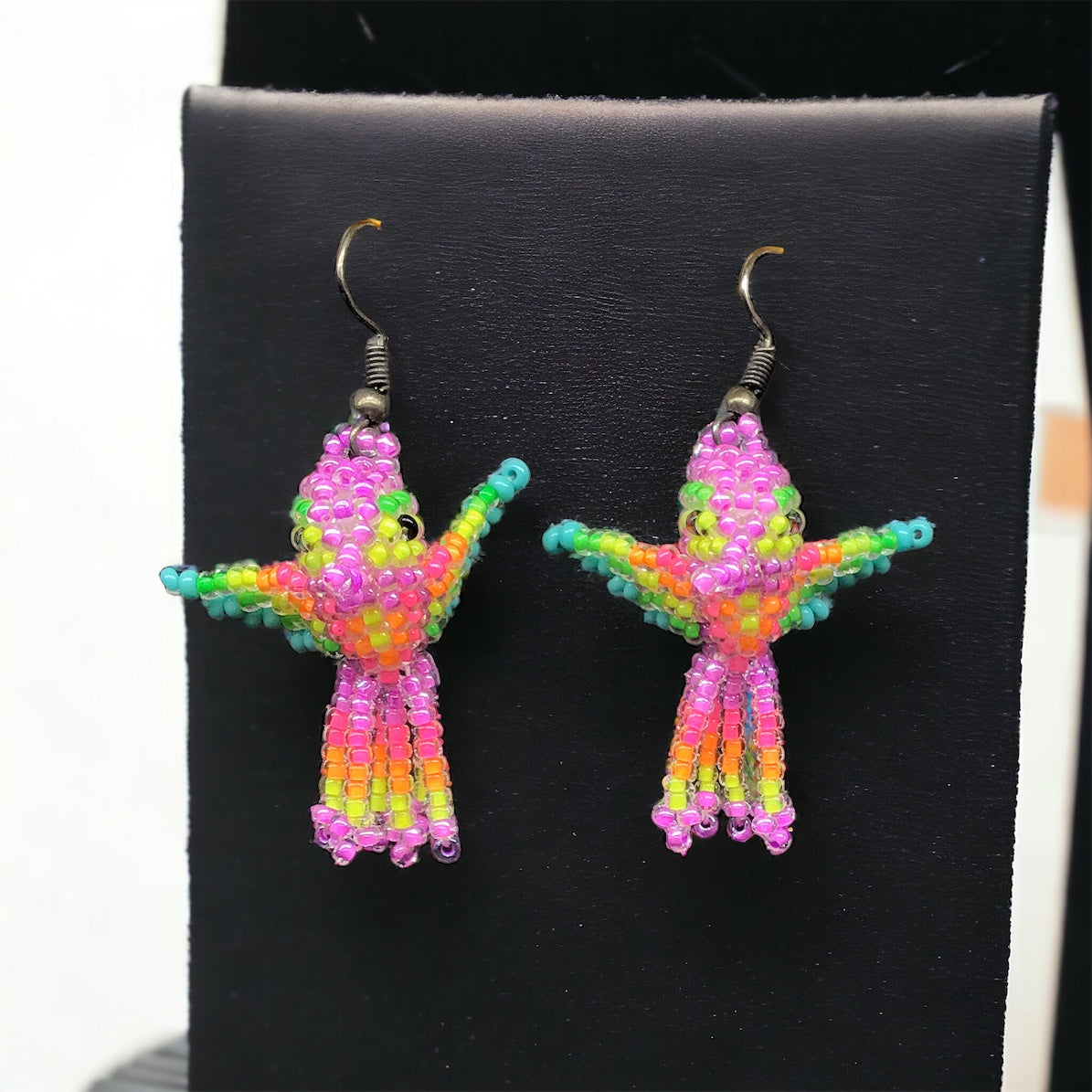 OLDTRIBES™ Pink Beaded hummingbird earrings