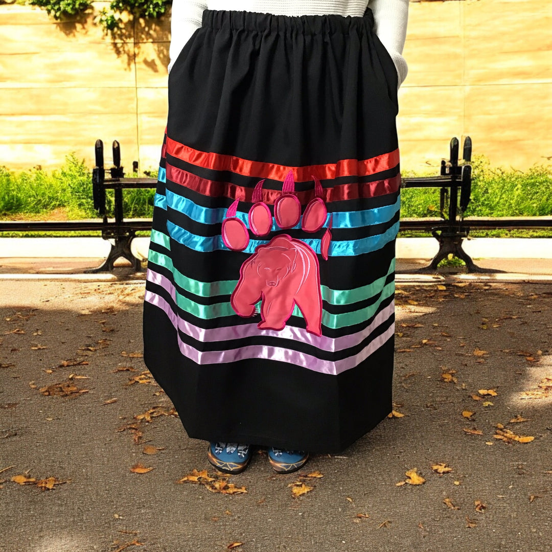This collection of handmade ribbon skirts honors Indigenous culture and tradition. Ribbon skirts are worn with pride at powwows, ceremonies, and special events. They show strength, identity, and connection to culture.