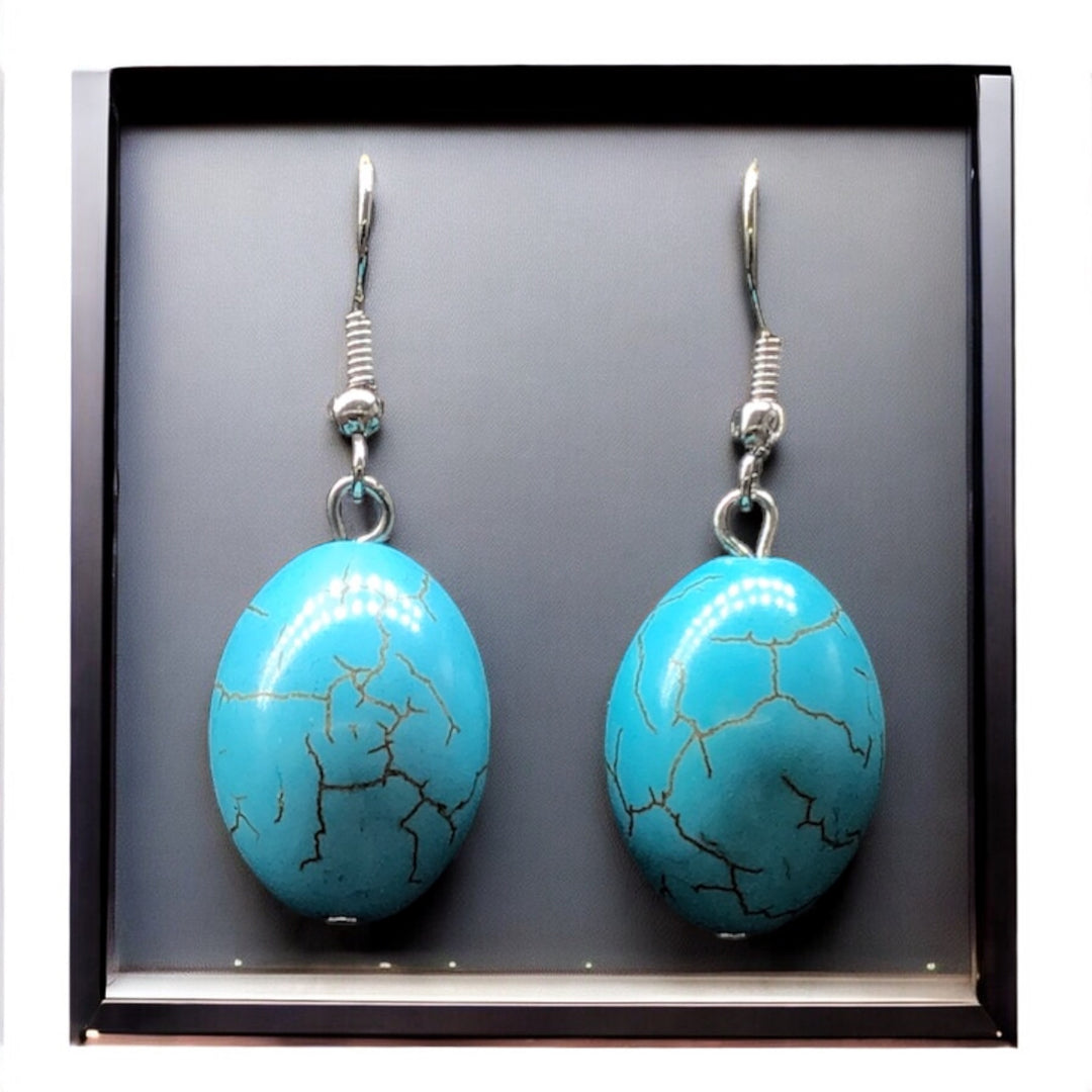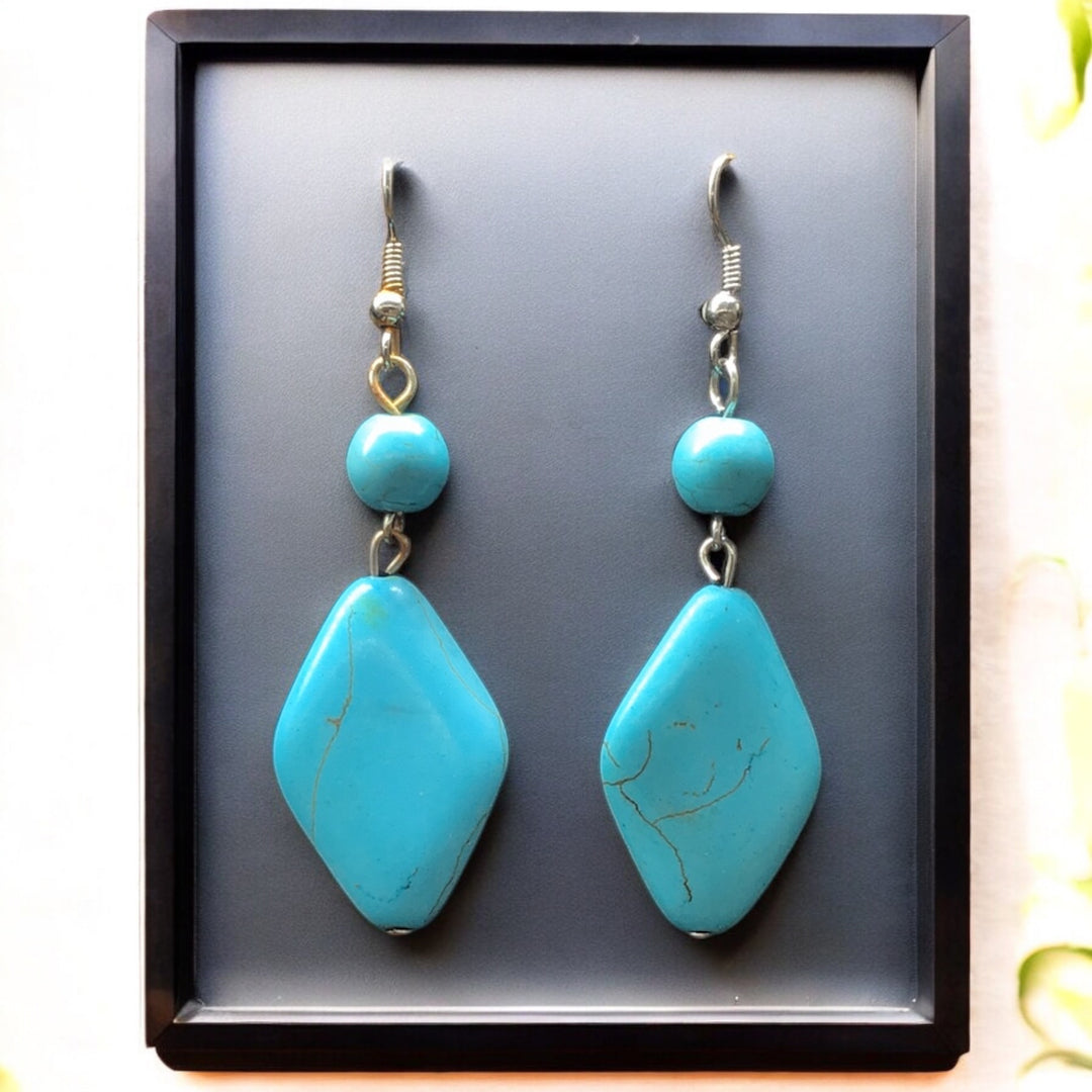 These exquisite turquoise earrings feature a stunning design that showcases the vibrant blue-green hues of natural turquoise stones. Crafted with precision, each earring is set in high-quality metal, ensuring durability and a luxurious finish. Ideal for both casual and formal occasions, these earrings add a touch of elegance and sophistication to any outfit, making them a perfect accessory for those who appreciate unique and eye-catching jewelry.