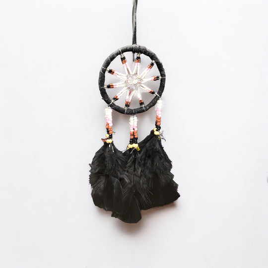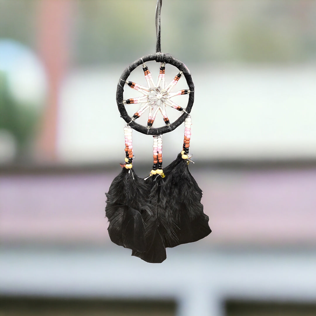Legend says that the web in the middle of the hoop would catch the bad dreams while letting good dreams pass through and slide down the feathers