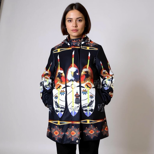 Our jackets come from Indigenous countries—Peru, Guatemala, Mexico, and Ecuador—and are 100% handmade. Our blankets are manufactured in Canada, and our beadwork is made by local artisans in Alberta.