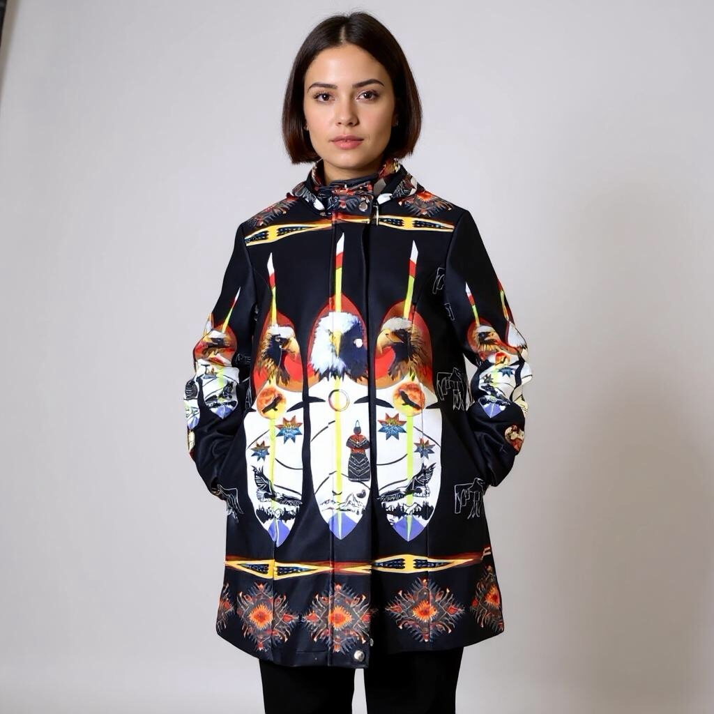 A vintage-inspired coat reimagined for the modern woman, blending timeless elegance with an updated, tailored fit. The vibrant, bold patterns and soft, lined interior create a harmonious balance of style and practicality. Ideal for autumn strolls, spring outings, or cool evening gatherings, this coat offers warmth and effortless sophistication.