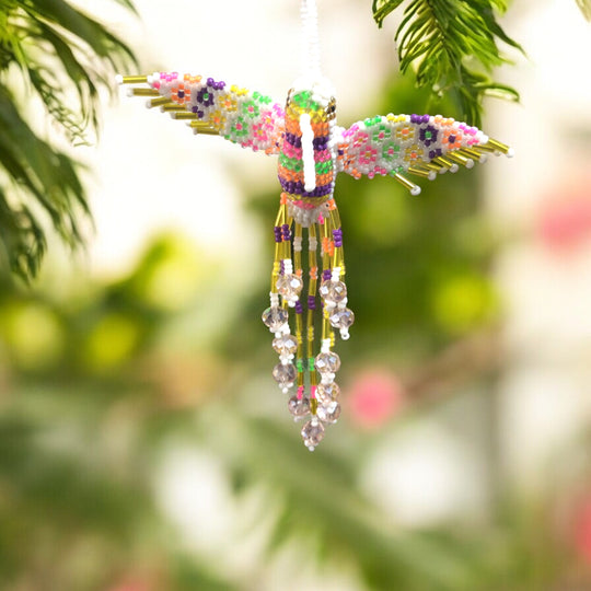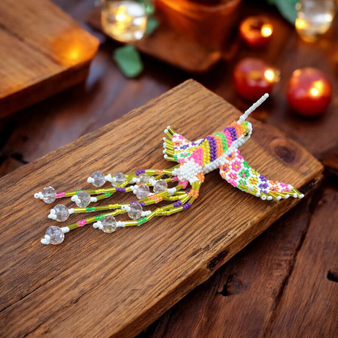 Handmade and brightly colored, this beaded hummingbird can be used to your mind's extent, and... it's even cuter in person! A great gift idea, this unique piece of art is sure to brighten anyone's day.