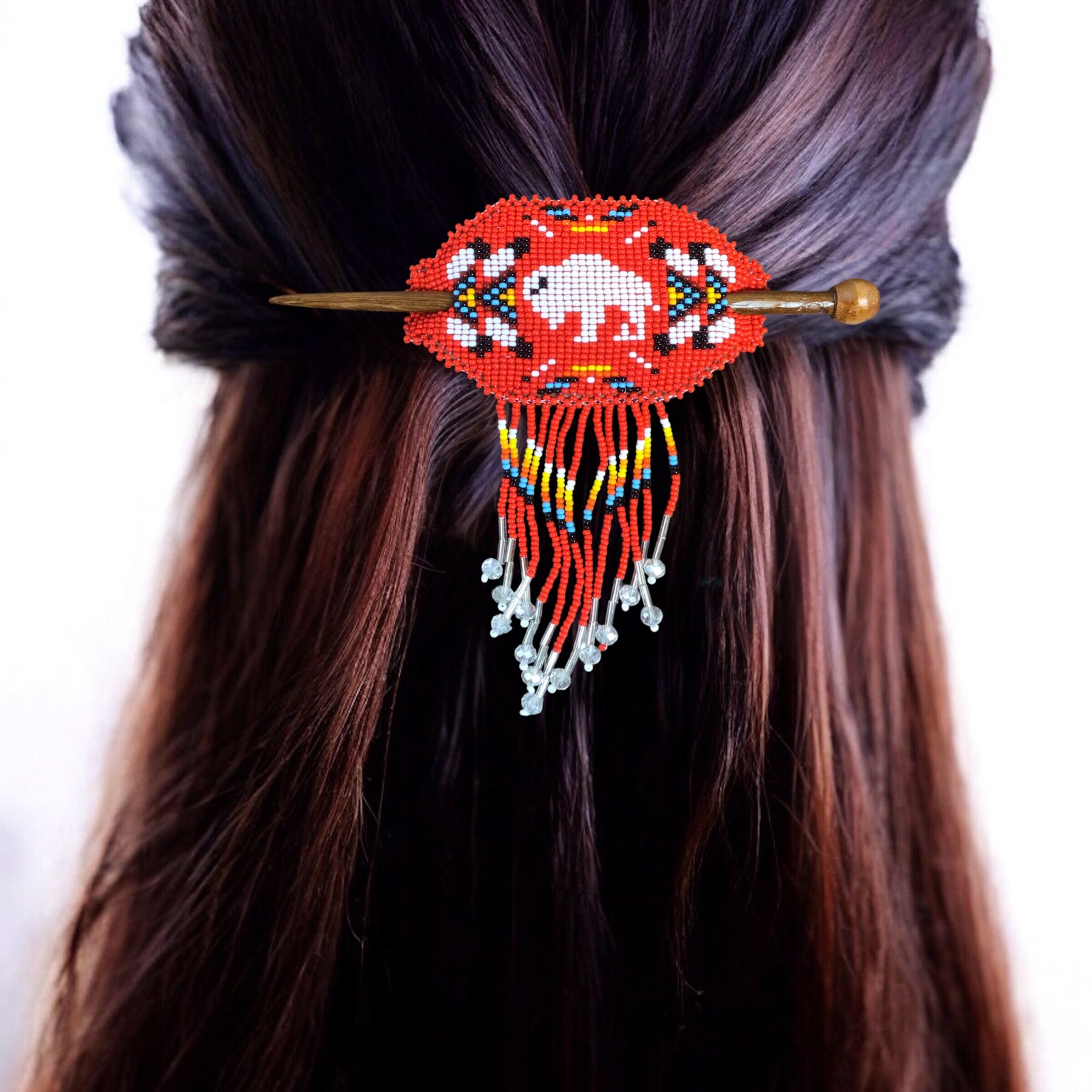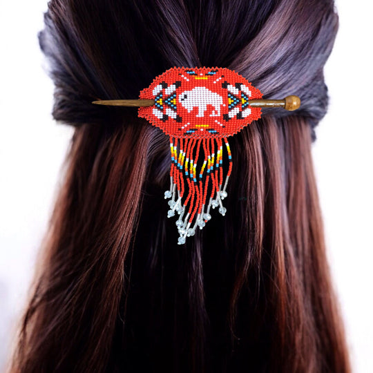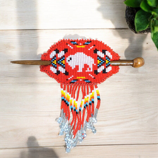 Buffalo Fringed Beaded Barrette & Wooden Stick