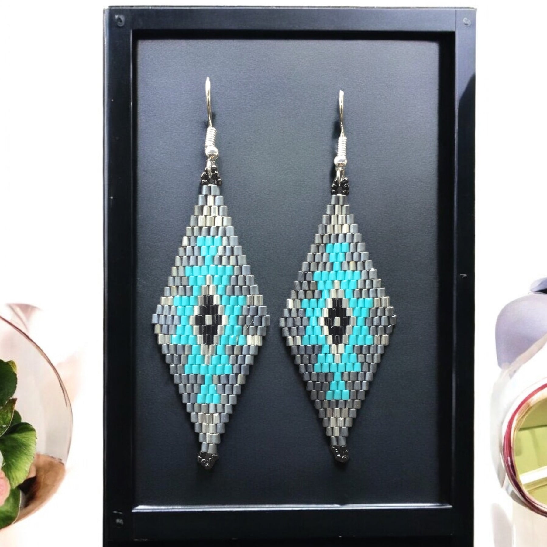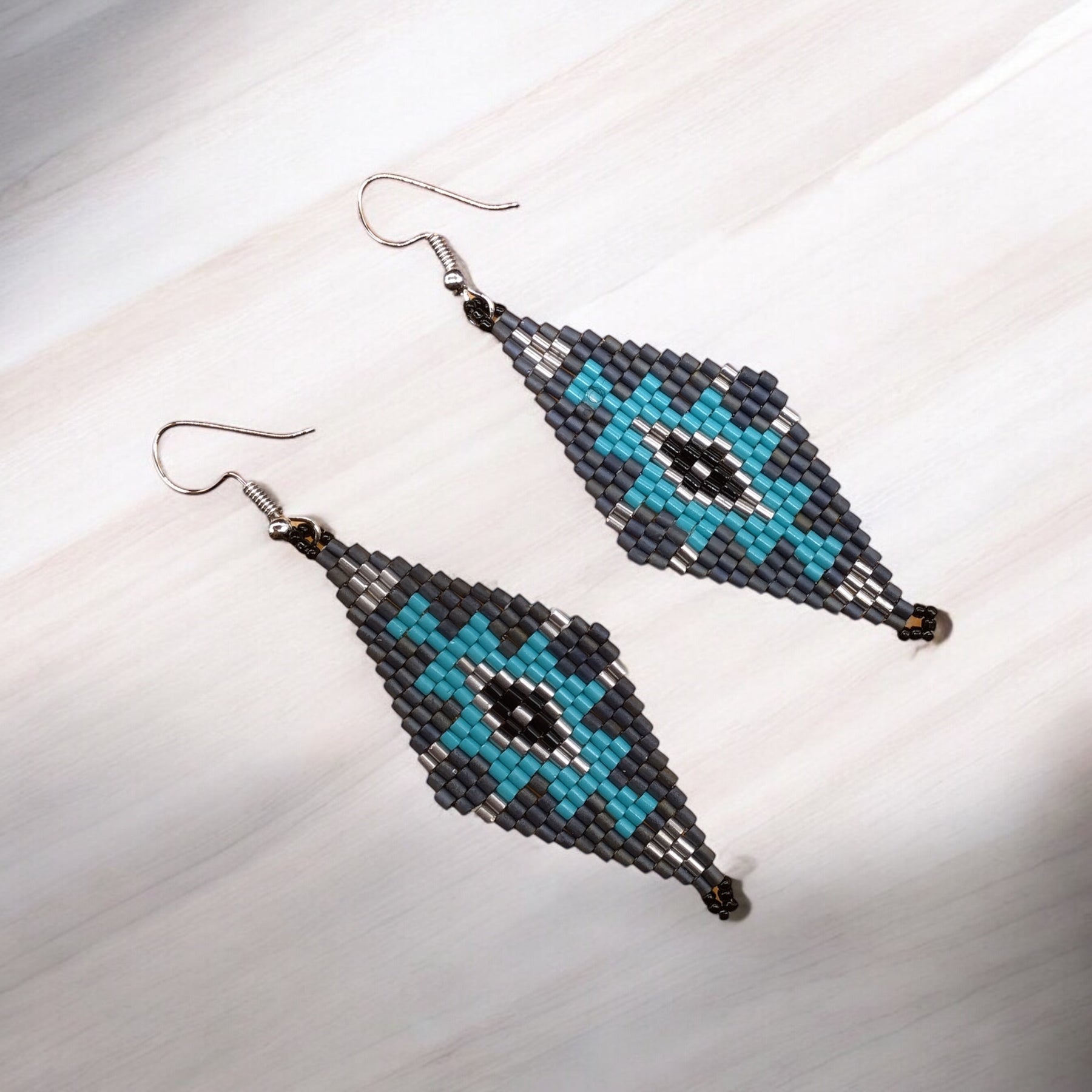 These Miyuki glass beaded earrings are crafted using world-renowned Miyuki glass beads, known for their exceptional quality, stunning brilliance, and consistent shape. Perfect for fashion designers, artists, and bead enthusiasts, these earrings are a must-have accessory for those who appreciate native beaded craftsmanship.