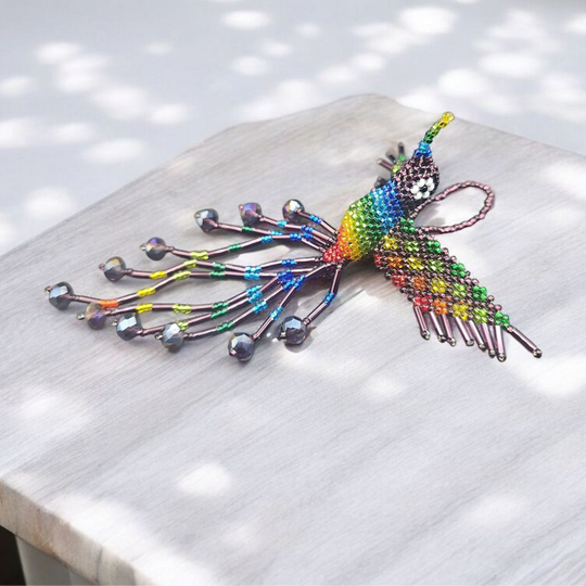 Handmade and brightly colored, this beaded hummingbird can be used to your mind's extent, and... it's even cuter in person! A great gift idea, this unique piece of art is sure to brighten anyone's day.