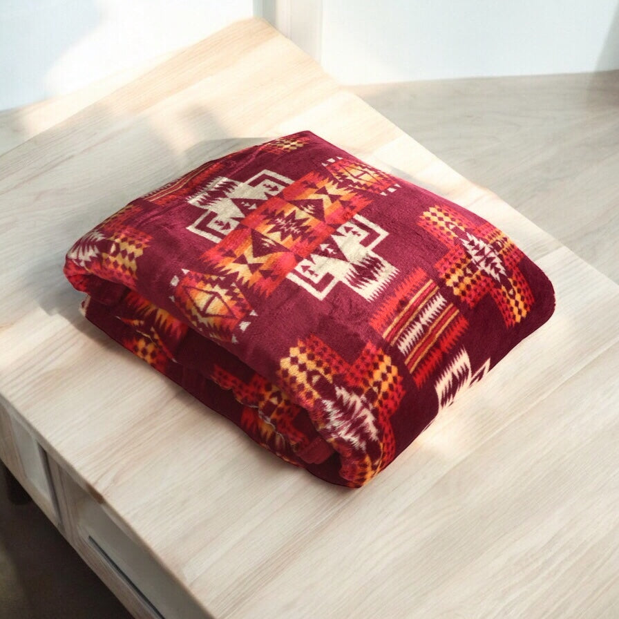 Red Southwestern Style Lightweight Queen Blanket – Cozy & Soft