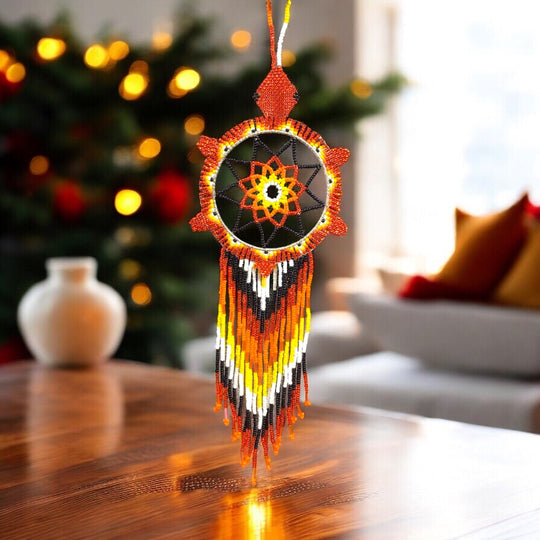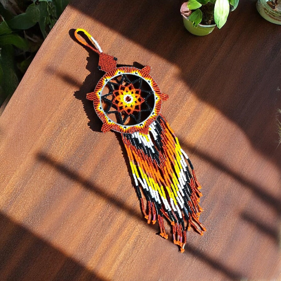 Add a touch of handmade beauty and positive energy to your space with this unique, all-beaded dreamcatcher. Carefully crafted using colorful seed beads and durable thread, this feather-free ornament is perfect for décor, car mirrors, small wall spaces, or as a thoughtful gift.