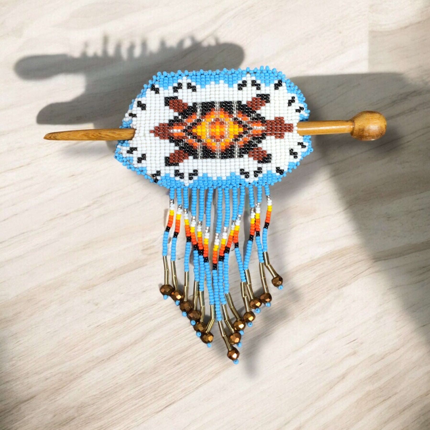 Fringed Beaded Barrette & Wooden Stick